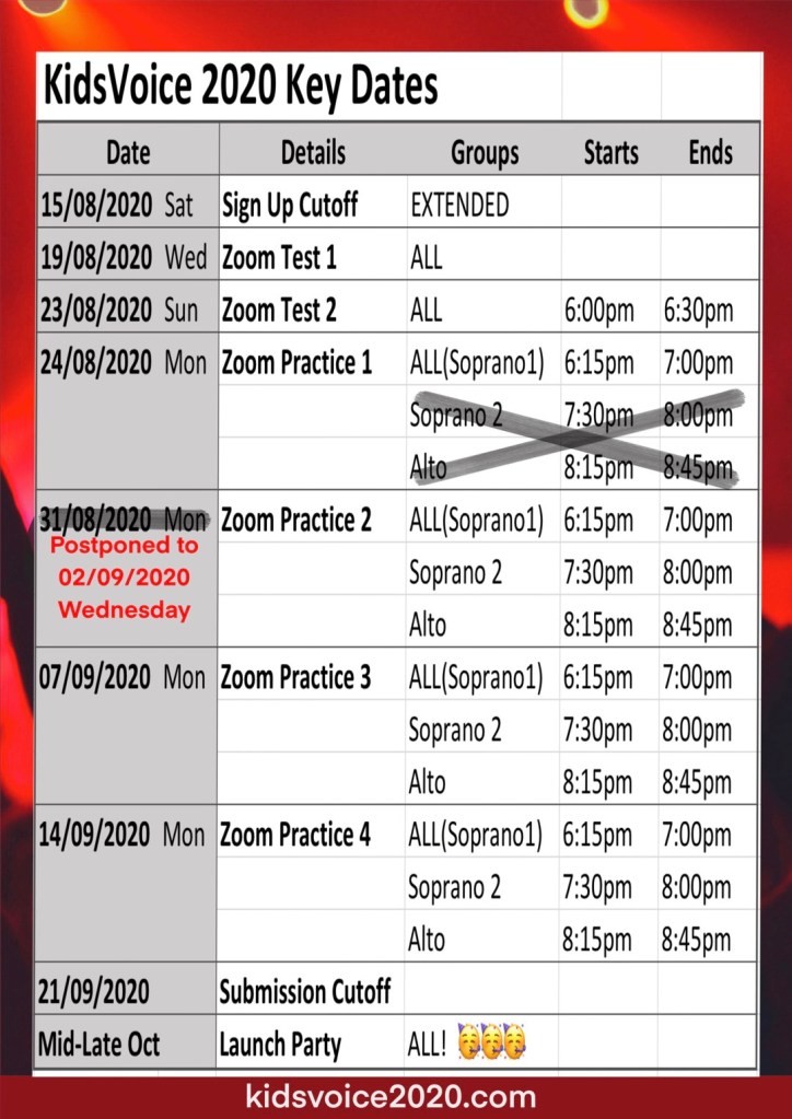 We will then be starting our four weeks of Live Zoom Practice Sessions in which we will learn a section of the song each week. Each session would be about 30mins long for each part but you can log in a bit earlier to have a chit chat with each other.